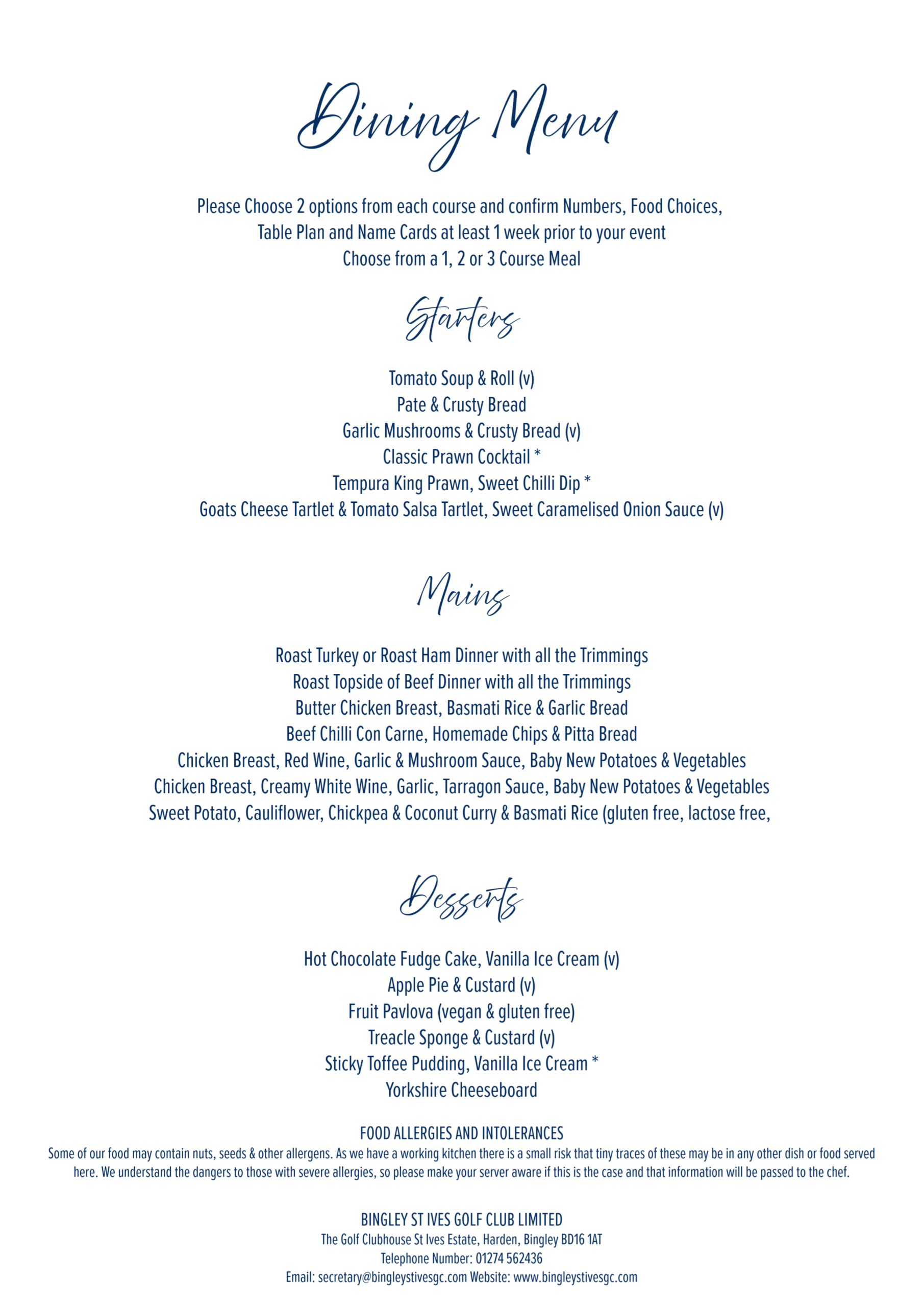 To check the availability of the function room and catering team on the date of your event please email the club Secretary – secretary@bingleystivesgc.com