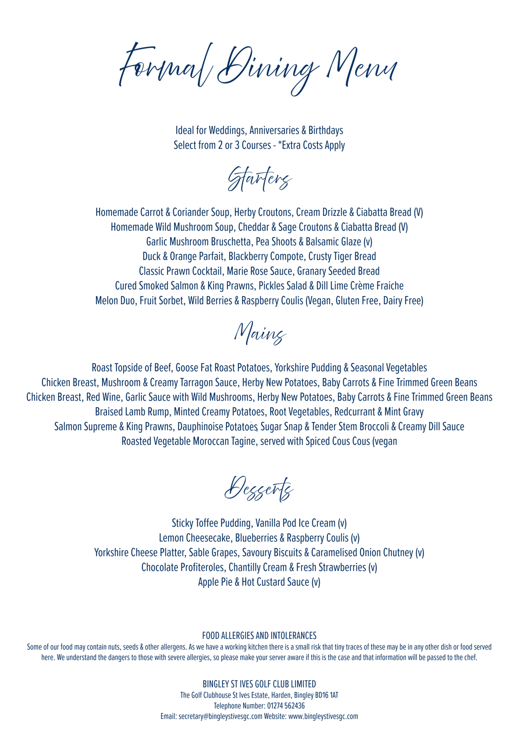 To discuss your particular requirements, request further information or to make a booking please contact the club on: 01274 562436 or email: secretary@bingleystivesgc.com